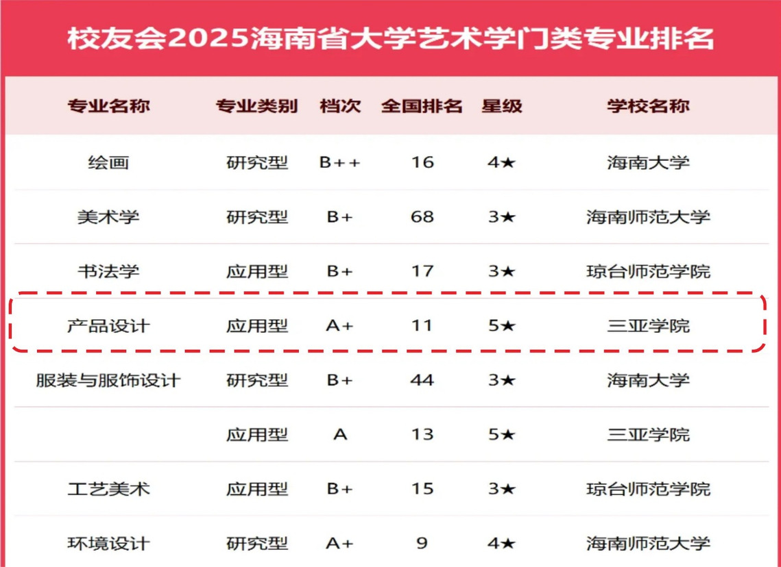 我校艺术学门类专业“产品设计”全国排名第11位,专业档次为A+,这是产品设计专业多年努力争取到的成绩。校友会2025大学排名评价指标体系由办学层次、思政教育、教学质量、杰出校友、高层次人才、学科专业、科研项目、科研基地、科研成果、社会服务、社会声誉和国际影响力等12个一级指标组成,基于“大平台、大团队、大项目、大成果、大校友”体系框架展开系统评价,覆盖的评估指标高达900多项。