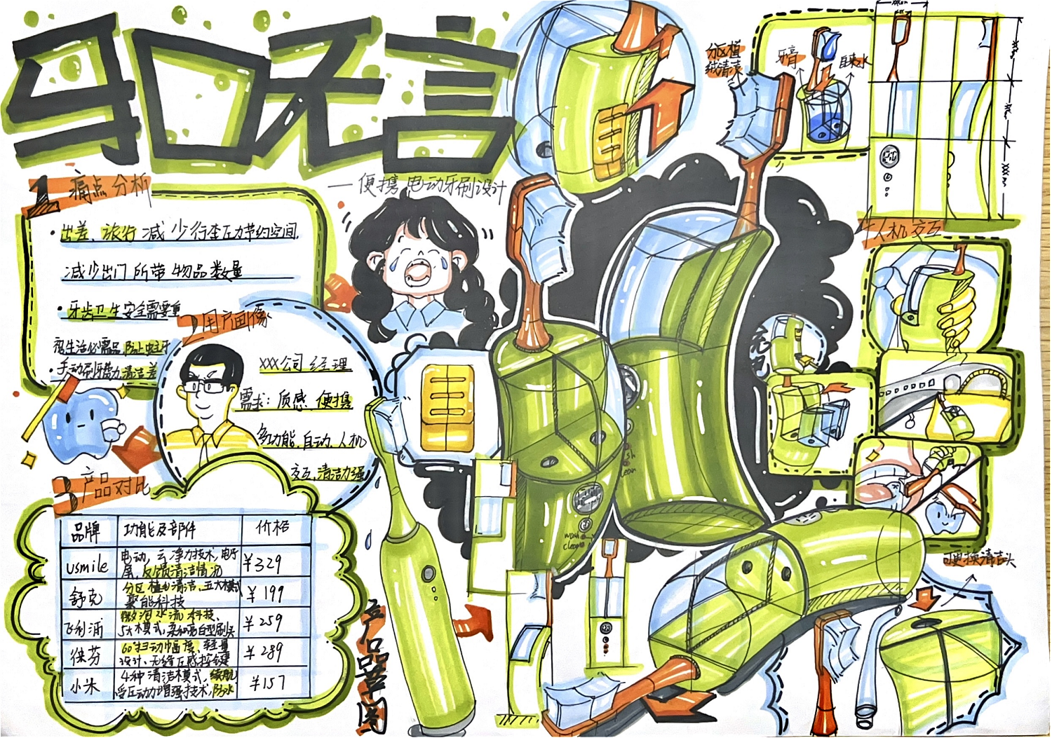 《设计表达Ⅱ》课程的核心目标在于实现从设计理论向设计实践的顺利转换。课程特别关注学生在设计思维转化过程中的关键环节,强调如何有效运用先修课程知识进行设计方案的综合性、创新性表达。通过系统训练,课程着力培养学生“发现问题 - 分析问题 - 解决问题”的核心职业素养,这正是产品设计师应对市场挑战的关键能力。