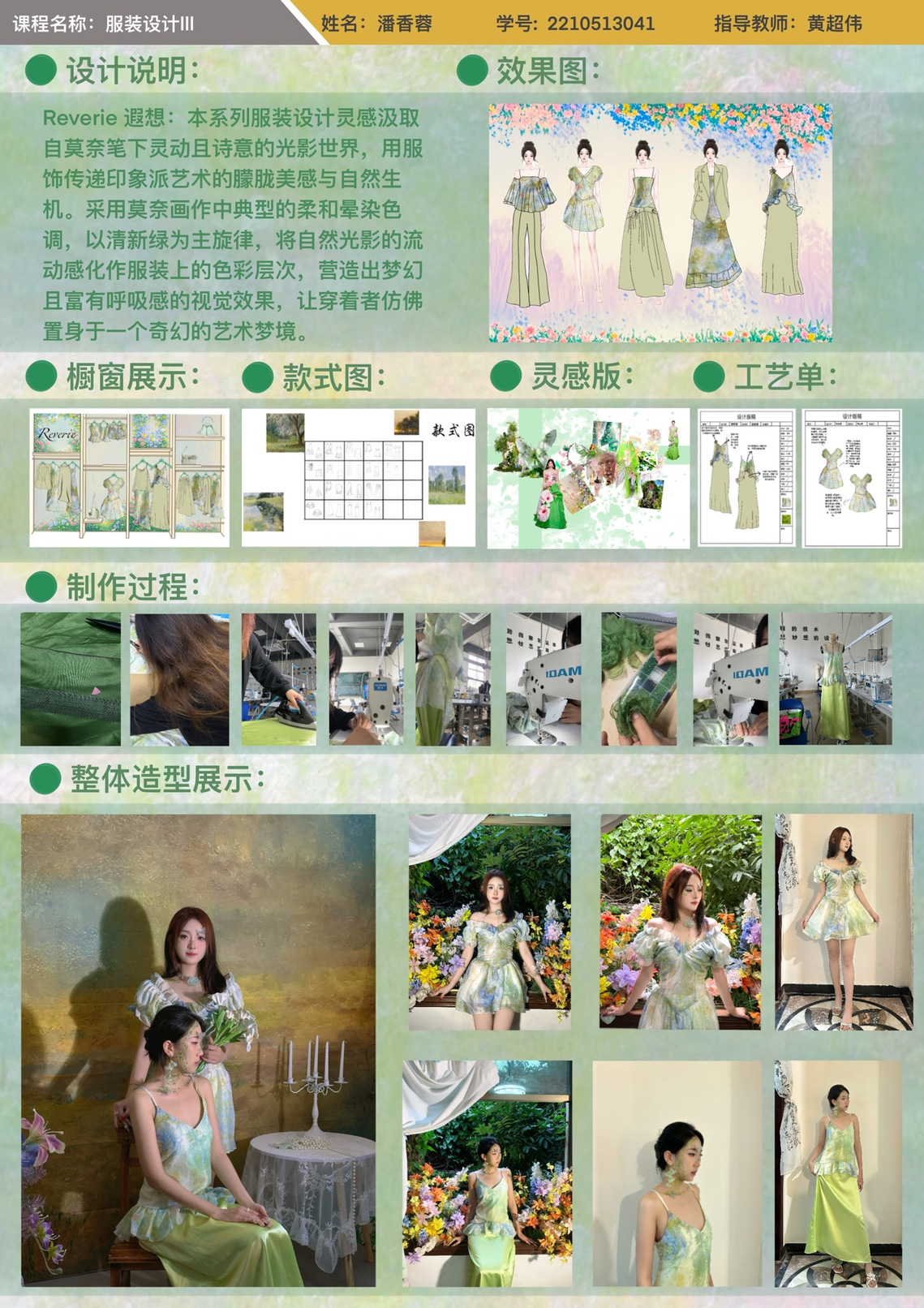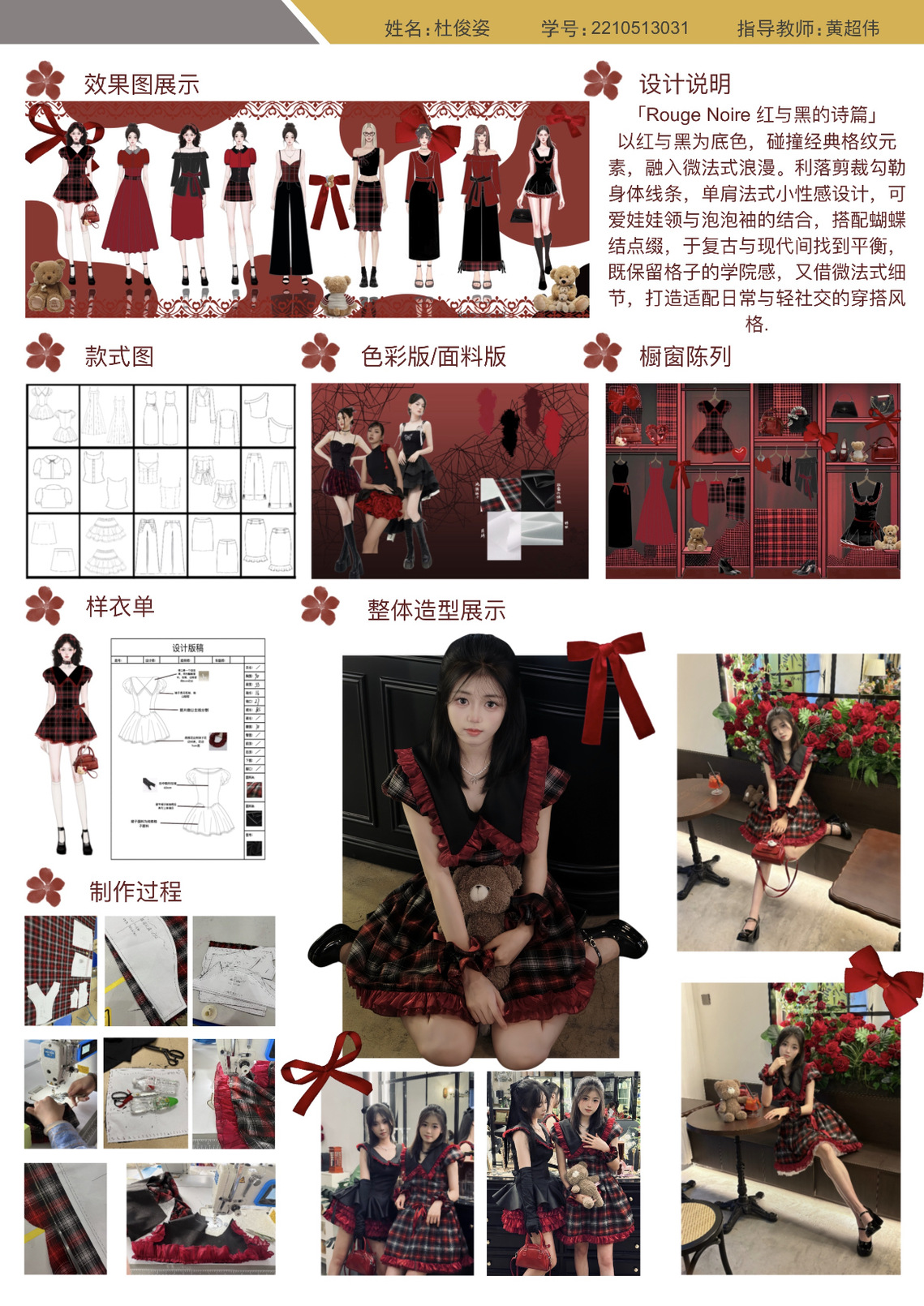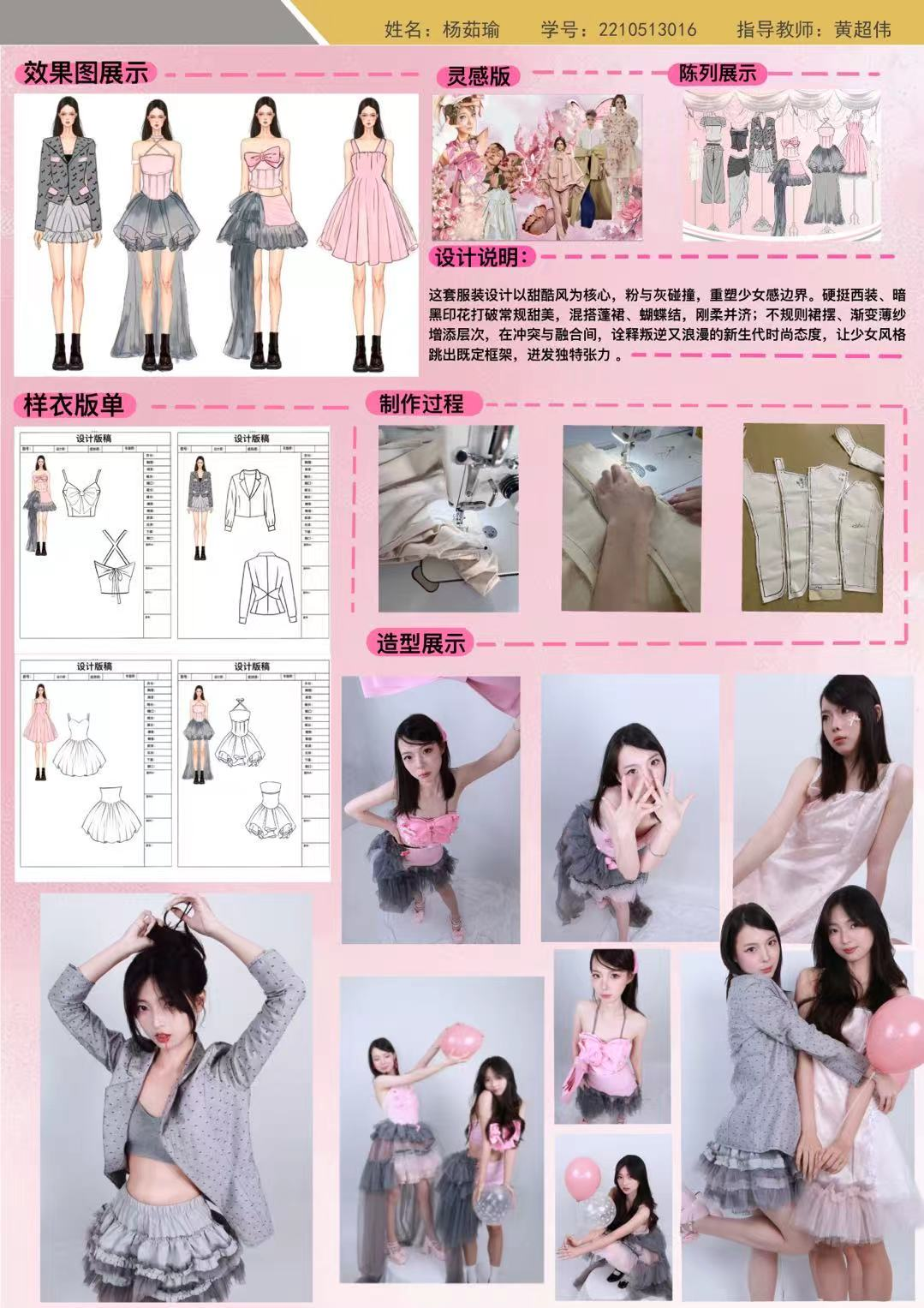 接下来给大家展示几组的课程优秀作品,融合了《服装设计III》与《成衣工艺》以及《人物整体造型》的期末结课作品,她们的服装作品不仅展现了专业功底,更融入了产品思维,体现了产教融合的创新理念,获得了师生们的广泛关注。