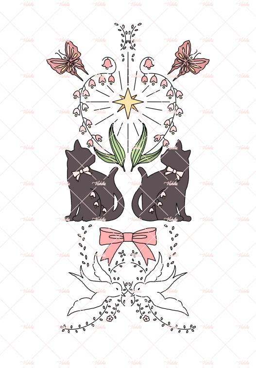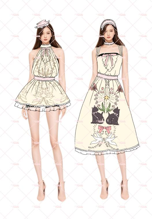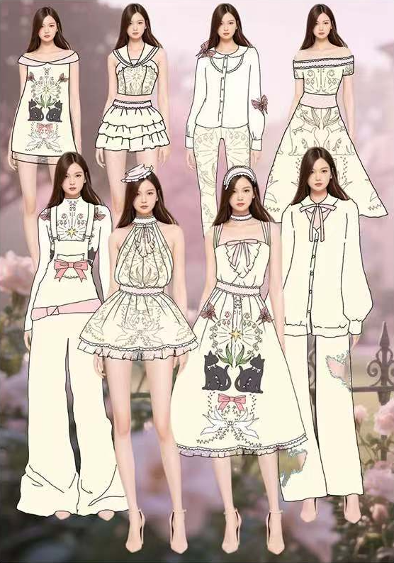 “本次设计主要面对的客户群体是18-25岁的年轻都市女性,在确定款式之前,我去了解了这个年龄段女性的审美倾向以及购买力,最后确定了以甜美、法式作为设计风格。系列图案的原创设计灵感来源于我对于浪漫这个词的想象,花卉、蝴蝶、猫咪、小鸟与蝴蝶结是我认为比较符合少女心的元素。”王文琦介绍道。